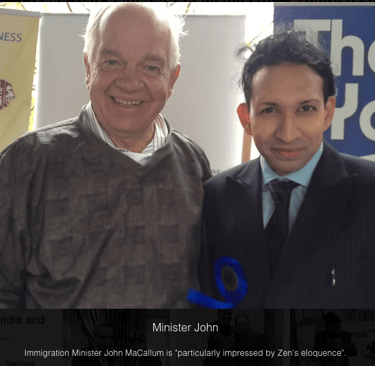 Zenji Nio has been praised by Canada's Minister of Finance and then Ambassador to China for his excellent public speaking skills that are "very impressive... the best he ever heard"