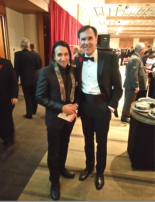 Zenji Nio and Canada's Minister of Finance were special guests at a Gala to celebrate the most influential Canadians. Zenji Nio is wearing his Samurai Buddhist insignia and discussed cool Asian and Buddhist concept with the Minister of Finance and the need to balance spirituality with materialism.