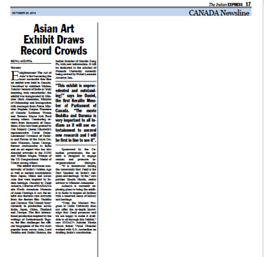 Indian Express confirms Zenji Nio's Samurai, Buddhist & Asian Art exhibit biggest in Canadian history