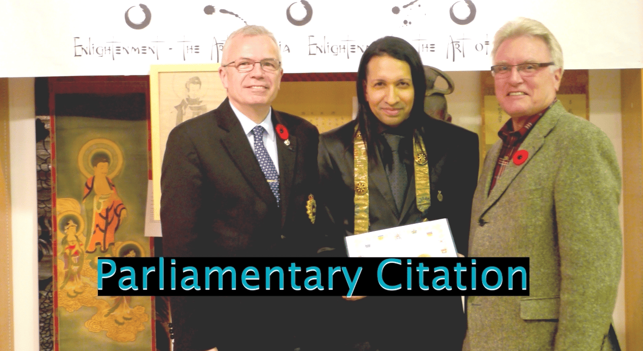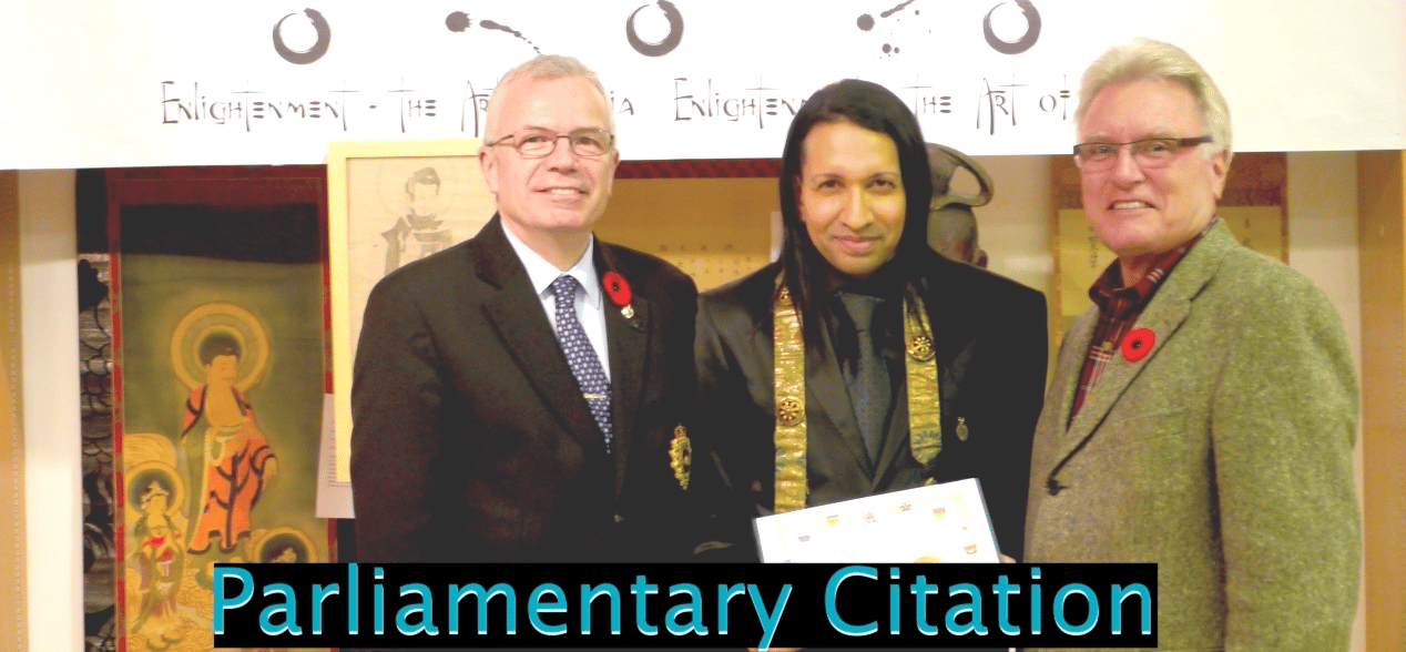 Zenji Nio honored by Canadian Parliament citation & Mayor of Pickering for organizing the biggest ever Asian & Samurai Art Exhibit ever held in Canada - sponsored by the Govt of Canada and praised by Govts of Japan, India, Netherlands and Lt. Governor on behalf of the Royal Family of England